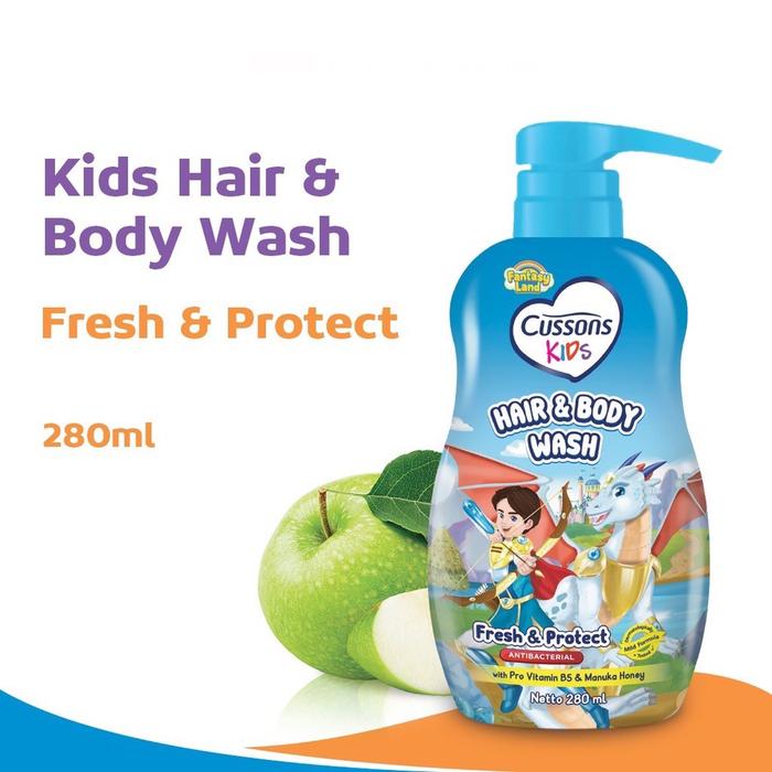 Cussons Kids Hair & Body Wash Fresh & Protect adalah sabun mandi 2-in-1 untuk anak yang membersihkan dan melembabkan kulit serta rambut dengan lembut. Produk ini diformulasikan dengan ekstrak Manuka Honey dan Vitamin B5 yang memberikan perlindungan sejuk, menjaga kulit tetap lembut, dan rambut tampak sehat. Sabun ini juga memiliki formula antibakteri untuk melindungi dari kuman, serta wangi buah apel yang segar dan tahan lamaPenjual : Shafamart Toserba